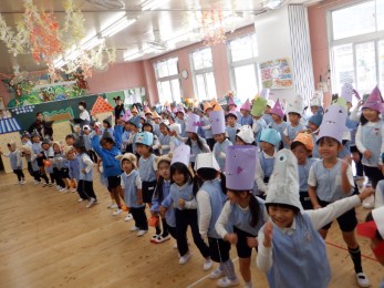 全園児で踊ったりゲームをしたりして、仲良く楽しく過ごしました。