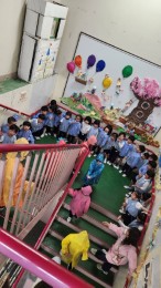 「花まつり」は、お釈迦様の誕生を祝う日です。お釈迦様の誕生日は4月8日ですが、新しいクラスや先生に馴れた頃、毎年5月に年長さんが式典に参加してくれています。