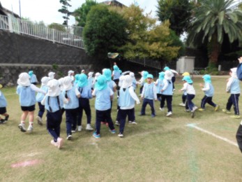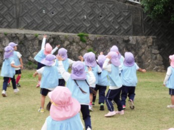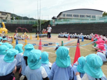 しゃぼたさんのお話を聞く子ども達。約束事も守ろうね。