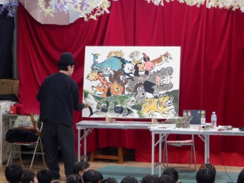 子ども達のリクエストを受けて、次々と動物が描かれていきます。