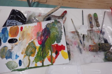 谷口さんが描き終えた後の筆や絵具に興味を示す子どももいました。