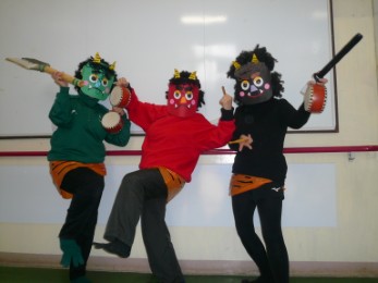 さあ、先生に豆をまいてもらって、みんなの心の中にいる鬼を追い出そう!