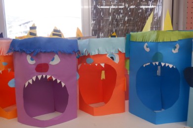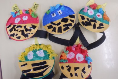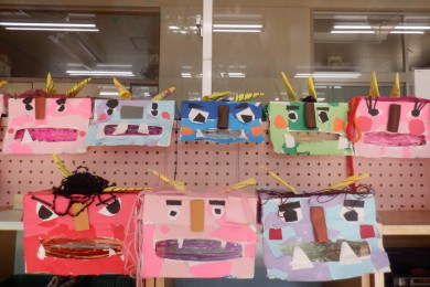 *子ども達の作ったお面です。ご覧ください*(無作為に一部抜粋しています)